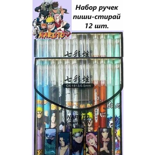 Набор ручек пиши-стирай Naruto, ручки гелиевые Наруто 12 шт. + подарок