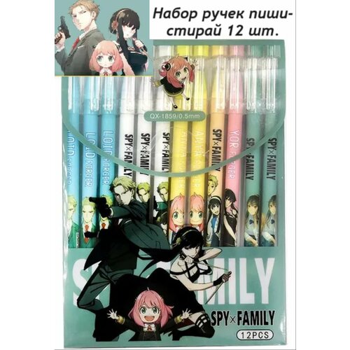 Набор ручек пиши-стирай Spy family, ручки гелиевые Семья шпиона 12 шт.