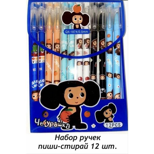Набор ручек пиши-стирай Футбольные звезды, ручки гелевые Чебурашка 12 шт.