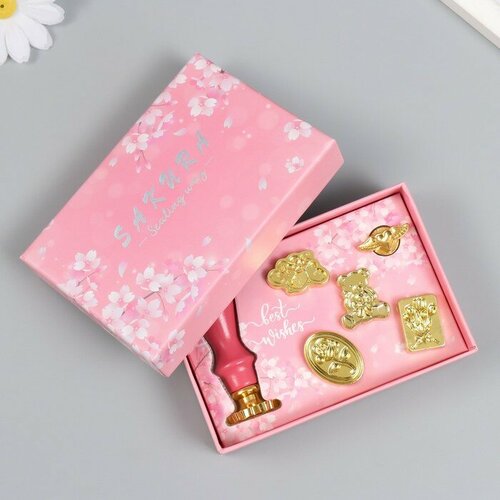 FriendZone Набор печатей для сургуча с деревянной ручкой "Цветочный" 12,8х8,6 см