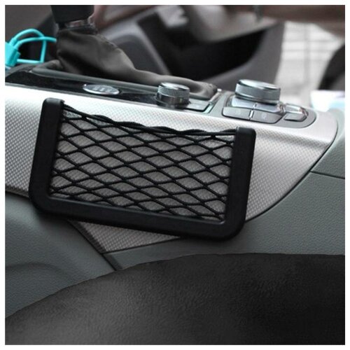 Карман-сетка под телефон на клейкой ленте, 14.5 x 8 см, чёрный