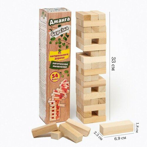 Падающая башня "Березка" макси, 54 бруска, брусок 6.9 х 2.3 х 1.8 см, 33 х 6.9 см