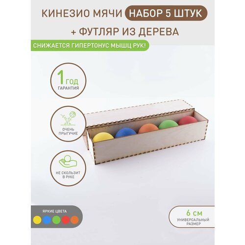 Кинезио мячи - набор 5 штук + футляр из дерева. Прыгающие мячи. Мячи прыгуны. Попрыгунчики. Кинезио. Сенсорная интеграция. Подвижные игры
