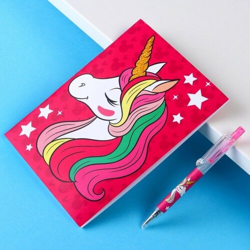 Канцелярский набор "Единорог", блокнот А6, ручка, наклейки, Минни Маус