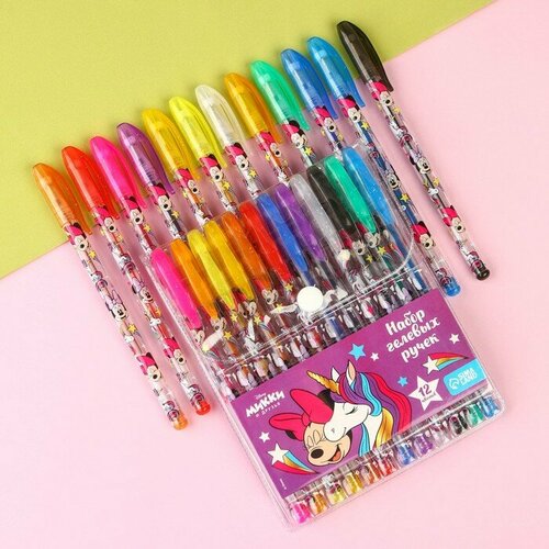 Набор гелевых ручек с блёстками, 12 цветов, Единорог, Минни Маус
