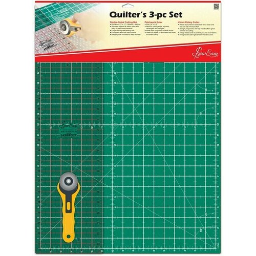 Набор для пэчворка: мат двусторонний 58 х 43 cм/23 х 17, линейка 24 х 6 1/2, нож раскройный 45 мм