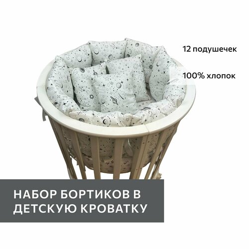 Бортики подушки в кроватку новорожденному 32х27 - 12шт, принт "Космос"