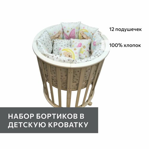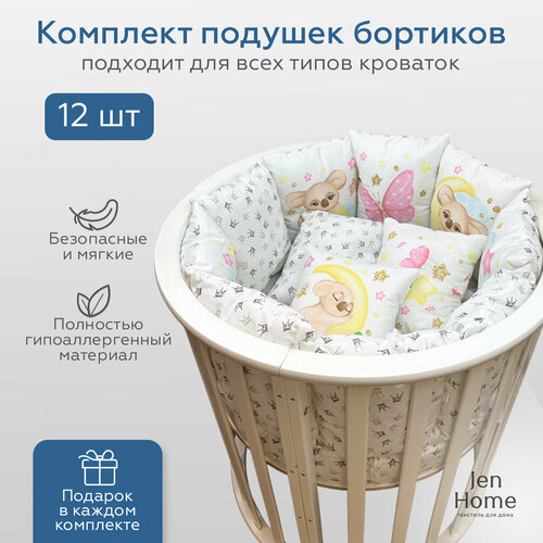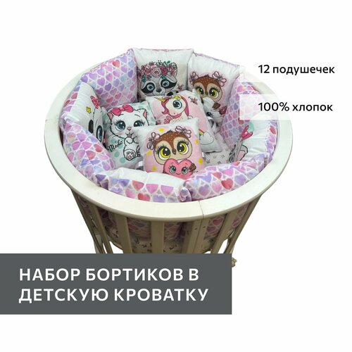 Комплект бортиков на детскую кроватку "Коалы девочки" 12 штук