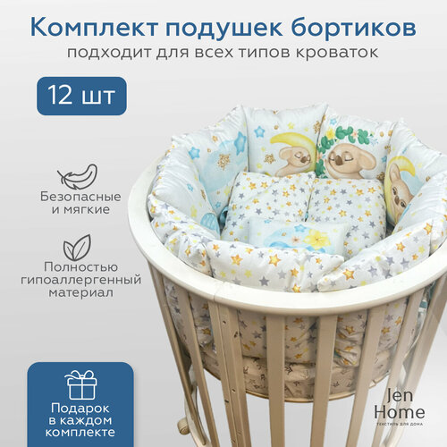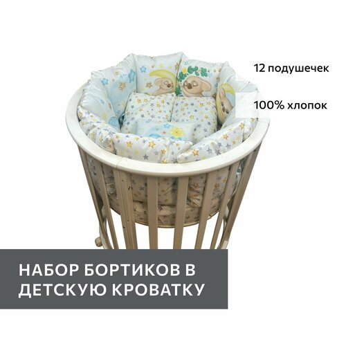 Комплект бортиков на детскую кроватку "Коалы мальчики" 12 штук