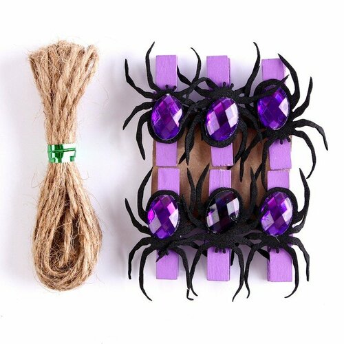 Набор декоративных прищепок «Пауки» 6 шт, фиолетовые