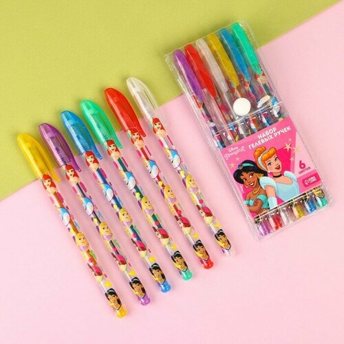 Набор гелевых ручек с блёстками, 6 цветов, Принцессы