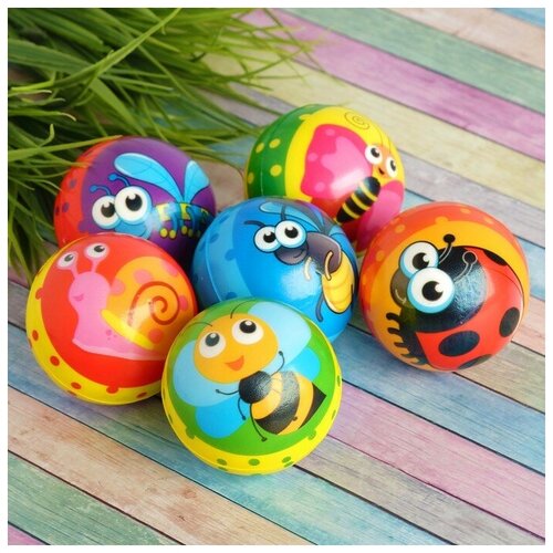 Мяч мягкий Насекомые, 6,3 см , виды микс. В упаковке: 12