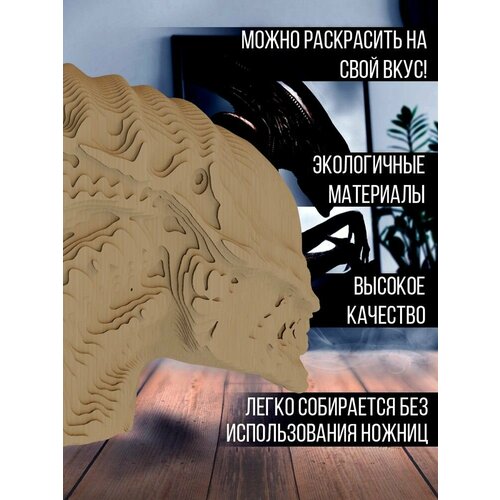 Картонный конструктор (3D пазл, интерьерная фигура голова) "животные динозавр ( игрушка, ти-рекс ) - 98"