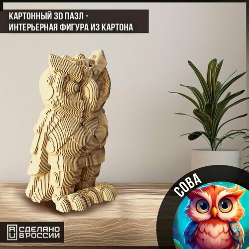 Картонный конструктор (3D пазл, интерьерная фигура голова) "животные птицы ( сова, игрушка ) - 93"
