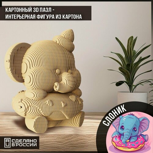 Картонный конструктор (3D пазл, интерьерная фигура голова) "животные слоник ( игрушка, пончик, милота ) - 102"