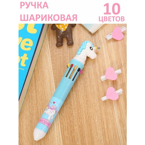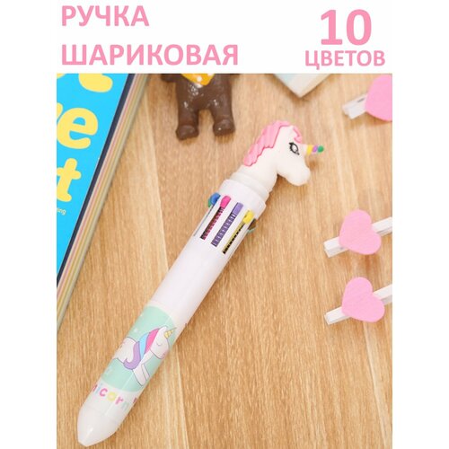Ручка шариковая Единорог, 10 цветов чернил, для девочек