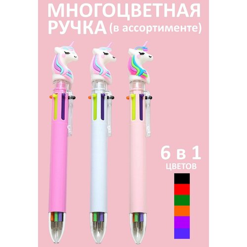 Ручка шариковая Единорог, 6 цветов чернил, для девочек, в ассортименте