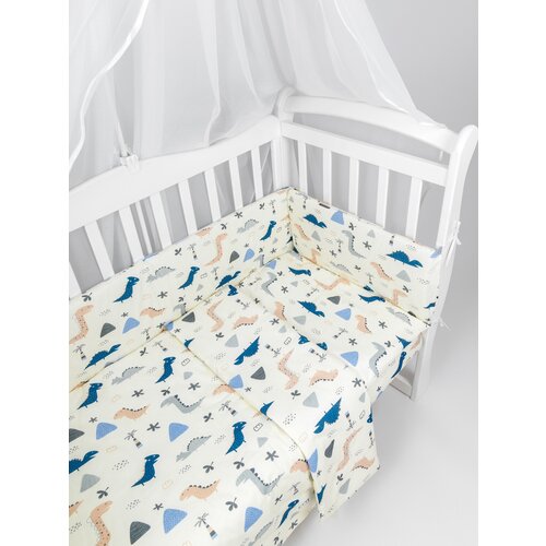 Бортик в кроватку на молнии (4 подушки-бортика) AmaroBaby Little dino