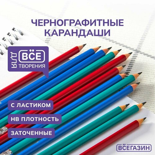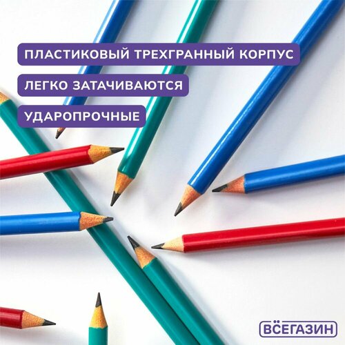 Карандаши чернографитные всёгазин 3х гранные, 3 цв корпуса, пластиковые, тиснение матовое серебро