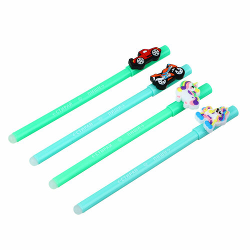 Всёгазин Ручка гелевая "Пиши - стирай", синяя, с фигуркой, 0,7мм, пластик, 4 дизайна, 24 штуки