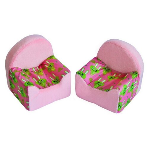 Набор мебели (2 кресла, 2 пуфика). "Кролики розовые" с розовым плюшем