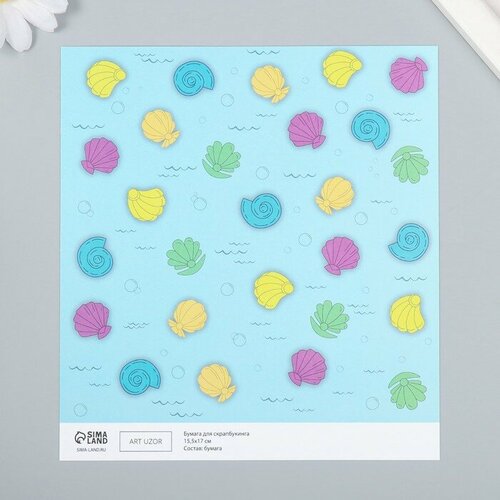 Бумага для скрапбукинга "Морские ракушки" плотность 180 гр 15,5х17 см