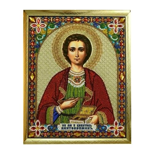 Набор для вышивания бисером с использованием камней и жемчуга Икона Св. Пантелеймон Целитель К-223 (19х24)