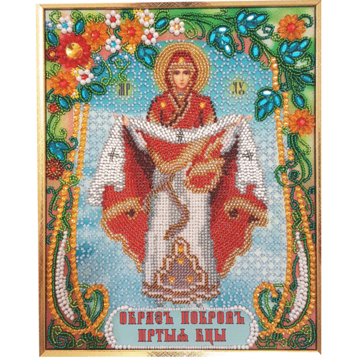 Набор для вышивания бисером с использованием камней и жемчуга Икона Божией Матери “Покрова” К-214 (19х24)