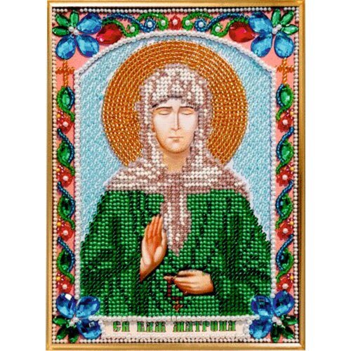Набор для вышивания бисером с камнями и жемчугом К-04 Икона Св. Матрона Московская (13х18)