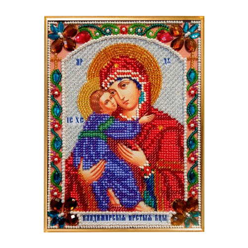 Набор для вышивания бисером с камнями и жемчугом К-11 Владимирская икона Божией Матери (13х18)