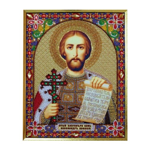 Набор для вышивания бисером с использованием камней и жемчуга Икона Св. Александр Невский К-222 (19х24)