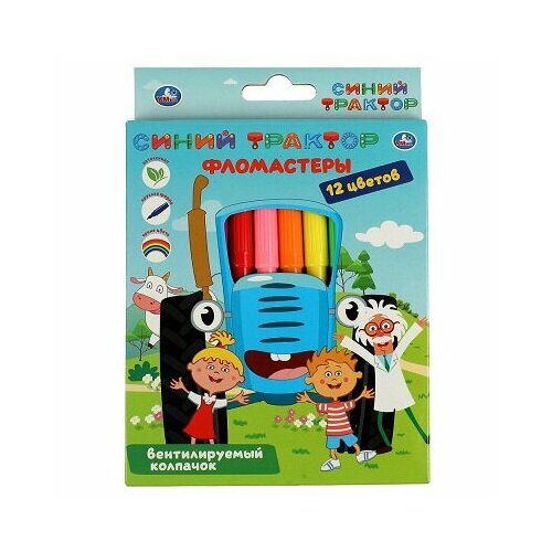 Фломастеры Синий трактор 12цв, круглые, карт коробка Умка