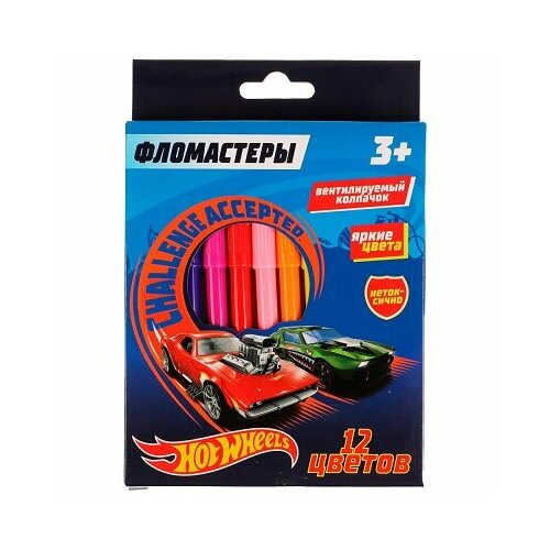 Фломастеры ХОТ вилс 12 цветов, круглые