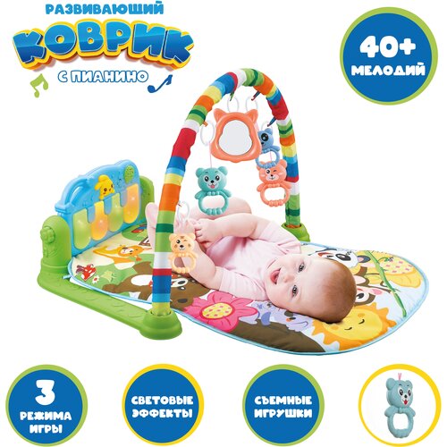 Коврик игровой, развивающий, мягкий, с пианино и погремушками, со звуком и светом