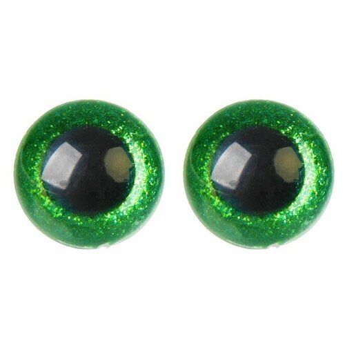 Глаза винтовые с заглушками, «Блёстки» набор 18 шт, размер 1 шт: 2,4 см, цвет зелёный (1шт.)