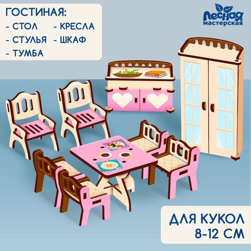 Чтобы любимая куколка вашей дочки могла встречать гостей в своем домике, ей необходимо обставить гостиную комнату соответствующей мебелью и аксессуарами. Например, детали из этого набора позволят малышкам дополнить гостиную изящным диванчиком, журнальным столиком с вазами, креслом и шкафом. Все детали набора выглядят очень реалистично за счет детальной проработки корпуса и характерных мелочей.Характеристики: мелочей.Характеристики:Пол: для девочек