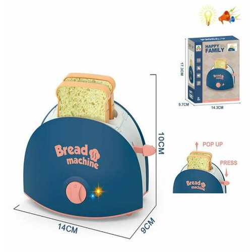 Тостер на батарейках (свет, звук) синий с хлебом в коробке