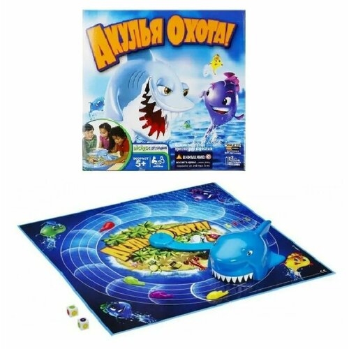 Развивающая настольная игра для детей Акулья охота на батарейках, игровое поле 39,5 х 39,5 см, акула двигается, фишки и 2 кубика, 86030