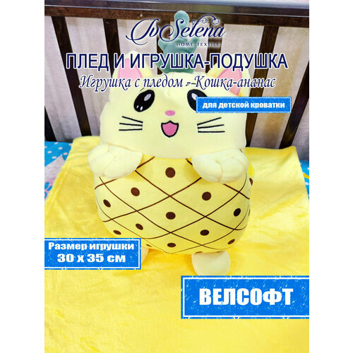 Игрушка-подушка с пледом - Кошка-ананас 30х35, 100х160