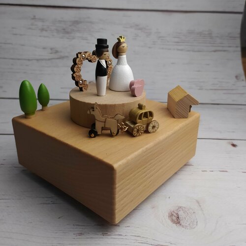 Музыкальная деревянная шкатулка карусель заводная Свадьба