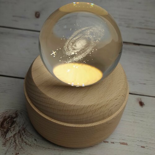 Музыкальная деревянная шкатулка карусель заводная Шар 3D светящийся Космос