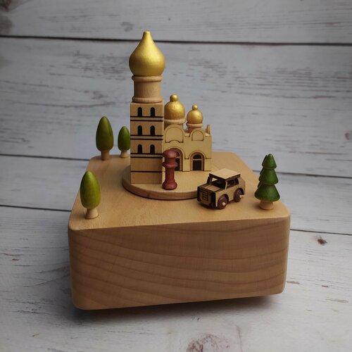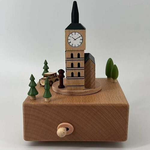 Музыкальная деревянная шкатулка карусель заводная "Лондон и автомобиль"