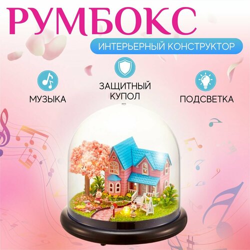 Музыкальный интерьерный конструктор с подсветкой "Весенний сад" с зайчатами, румбокс, миниатюра DIY House, набор в подарок для детей и взрослых