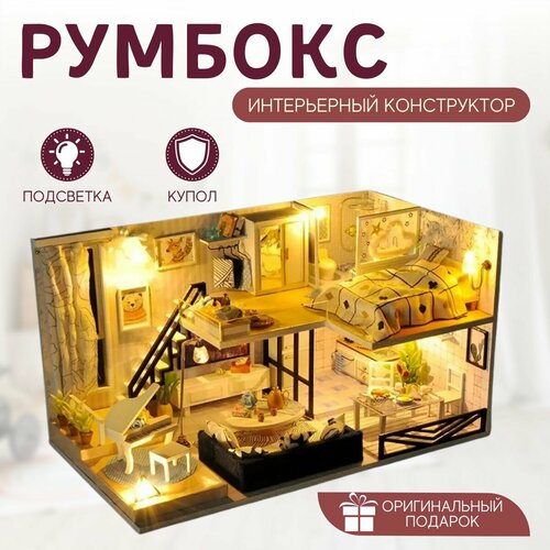 Интерьерный конструктор с подсветкой "Уютный коттедж", румбокс, миниатюра DIY House, набор в подарок для детей и взрослых