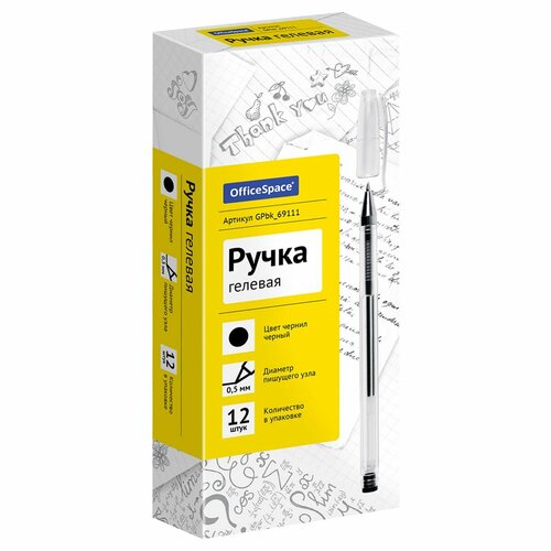 Ручка гелевая 12 шт OfficeSpace "Classic" черная, 0,5 мм