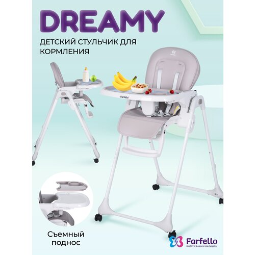 Стульчик для кормления складной детский Farfello Dreamy, от 6 месяцев до 3 лет, до 15 кг, съемный поднос с подстаканником, цвет светло-серый