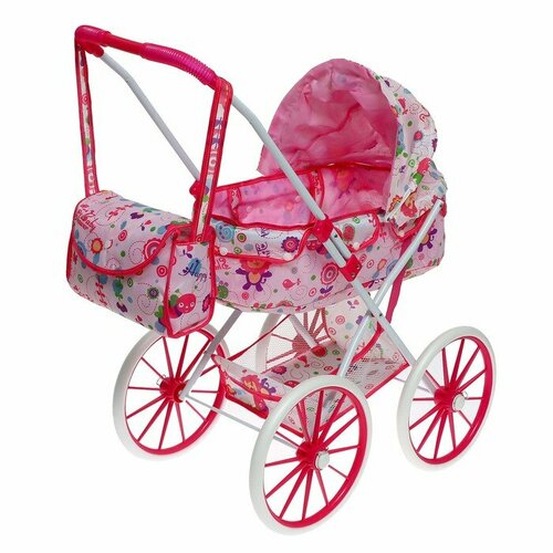 Коляска для кукол, универсальная, с корзиной, сумкой, металлический каркас