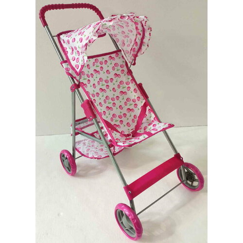 Коляска прогулочная Melobo для кукол, белая, с вишенками, в пакете 9304/цвeт№2