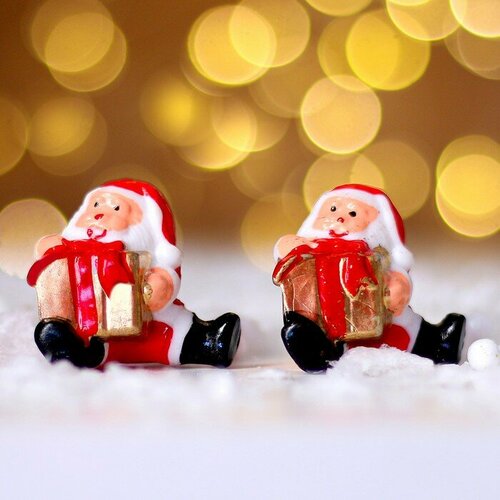 Миниатюра кукольная «Дед Мороз с большим подарком», набор 2 шт, размер 1 шт. — 3,4 × 3,7 см