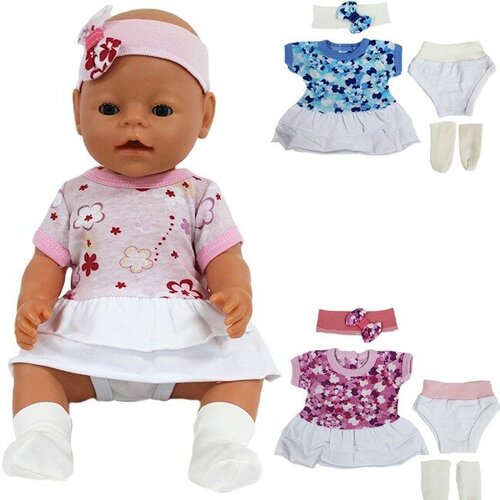 Одежда для куклы Комплект платье повязка трусики носочки